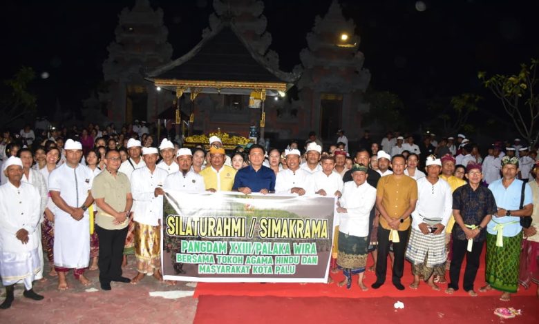 INTERKINI.CO , PALU – Panglima Kodam (Pangdam) XXIII/Palaka Wira, Mayjen TNI Jonathan Binsar Parluhutan Sianipar, melaksanakan silaturahmi dengan tokoh agama Hindu dan umat Hindu Sulawesi Tengah dalam kegiatan doa bersama di Pura Agung Wana Kerta Jagat Natha, Palu, Selasa (2/9).