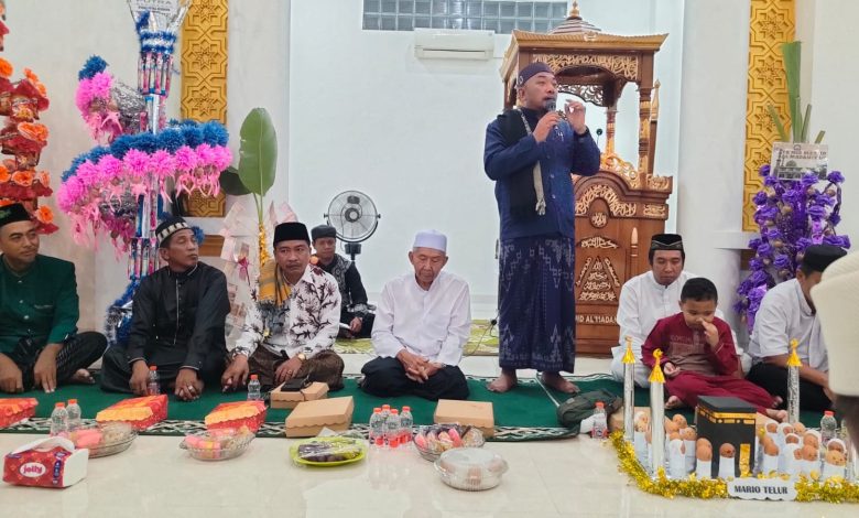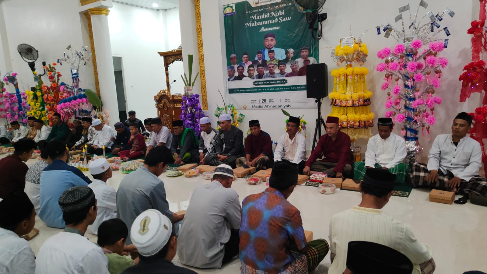 Ketua Ta’mir Masjid Al-Madaniyah, Salim Gasalele, S.Pd.I, dalam sambutannya menyampaikan bahwa Maulid Nabi adalah momentum penting untuk mengambil ibrah (pelajaran) dari kisah dan teladan Rasulullah SAW.