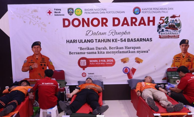 INTERKINI.CO, PALU – Dalam rangka menyambut Hari Ulang Tahun (HUT) Badan Nasional Pencarian dan Pertolongan (Basarnas) ke-54, Basarnas menggelar aksi donor darah secara serentak di tingkat pusat hingga seluruh kantor SAR di daerah, Senin (2/2/2026).
